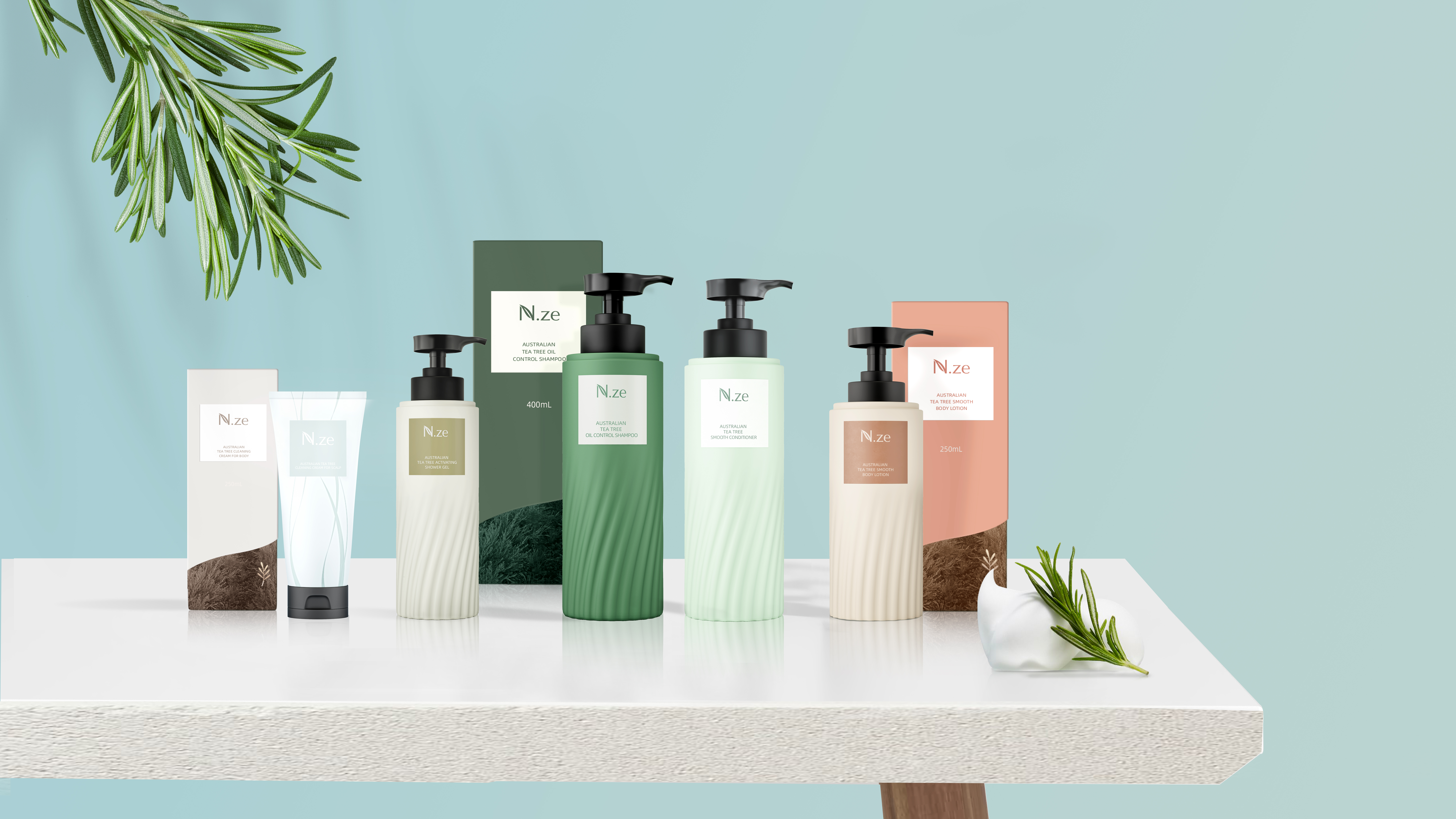 Nze是专注茶树精油功能成分的洗护品牌。我们挖掘茶树精油“提升机体免疫力,抵抗外界干扰,而实现肌肤健康美丽”差异化功能特征,并以此进行品牌价值与理念的塑造,以“由内而外”的品牌价值主张,用户建立情感共鸣,并将茶树洗护的差异概念对外呈现。