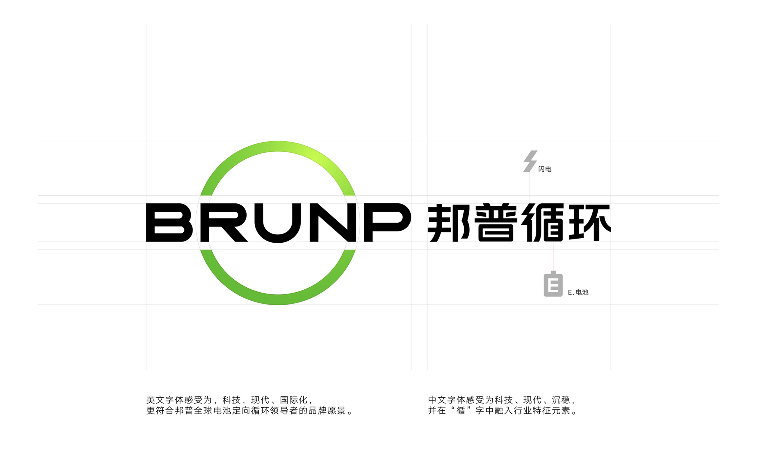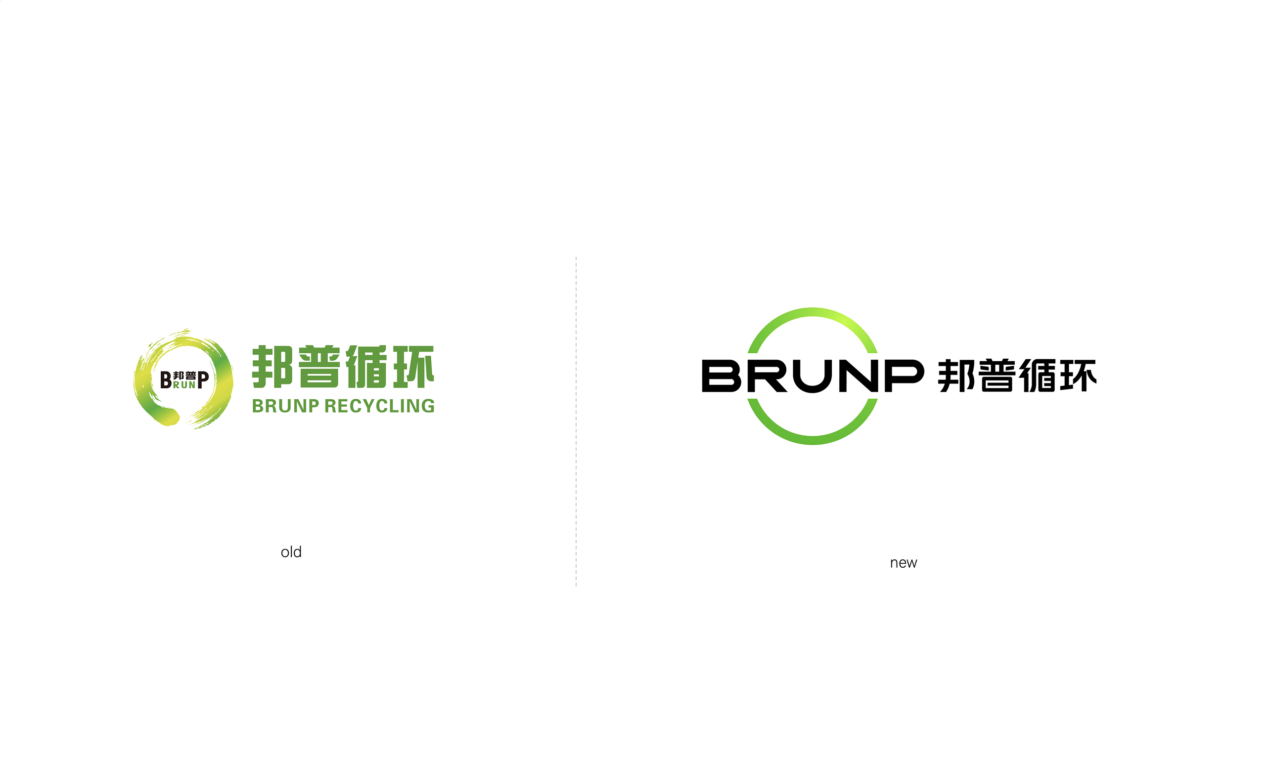 在双碳战略与中国新能源产业链加速出海的宏观背景下,作为全球电池定向循环领导者,邦普循环(Brunp Recycling)亟需打破本土化的视觉局限,构建通用的国际品牌语言。本次升级不仅是形象的更迭,更是战略的升维:设计保留了核心资产“能量环”,但大胆摒弃了传统书法笔触的装饰性表达,转而采用极具工业理性与普世美学的几何语言。